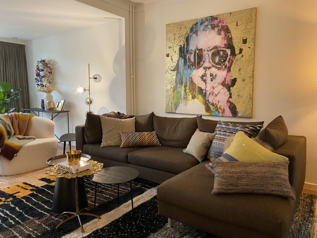 Hoe woont Jeanne nu eigenlijk zelf, als interieur ontwerpster? Deze interieur stylist houdt van vele interieur stijlen zoals vintage en klassiek gemixed met moderne meubels, interieurs waar accenten van de luxe Hollywood Regency stijl, de kleurrijke Bohemian chic, de etnische objecten en stofferingen van etno-chic, de prints van bobo chic en de gouden accessoires van de happy of Miami chic voorkomen.