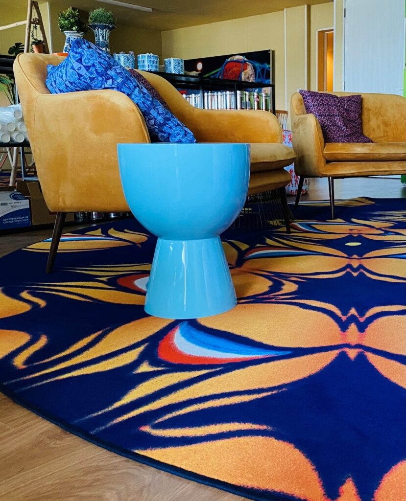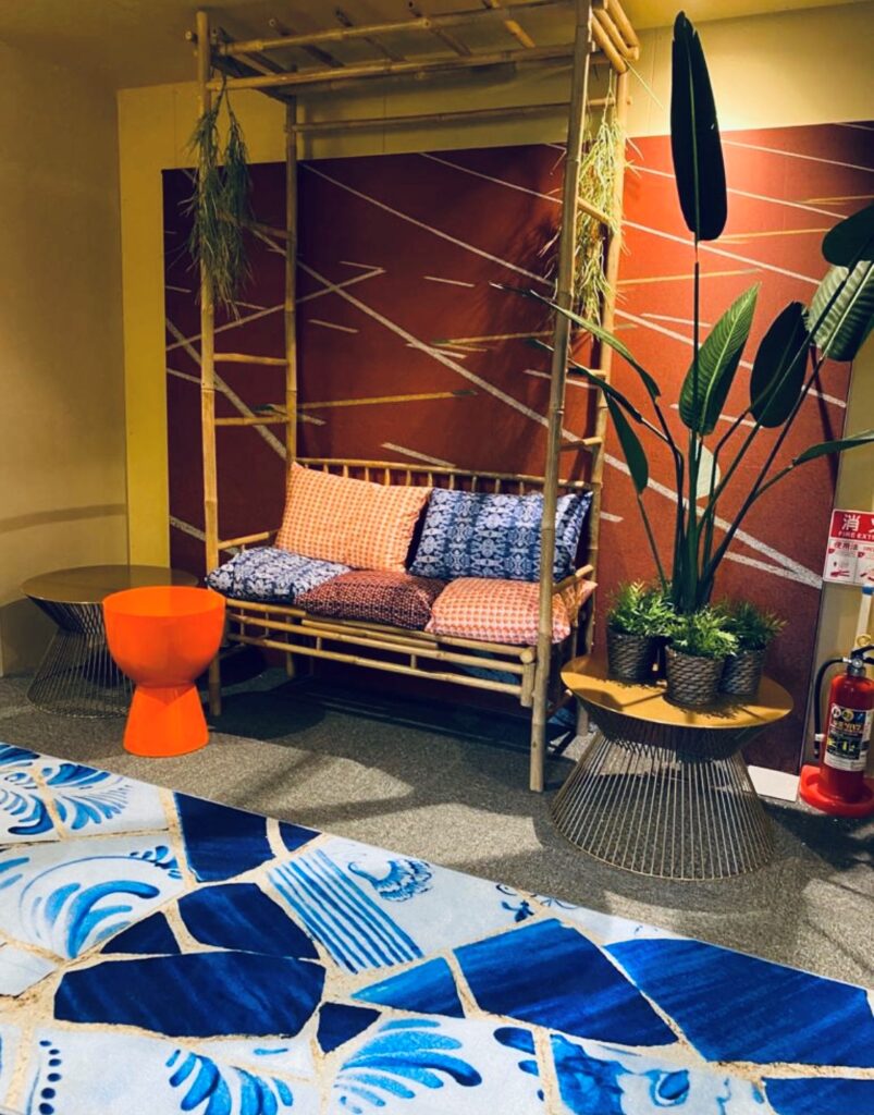 Voor het Nederlandse Olympische atletische team heeft JM-Style in Tokio een mooi project gerealiseerd. Jeanne heeft de kussens en vloerkleden zelf ontworpen, waar het logo in is verwerkt. De loungeruimte heeft een kenmerkende Nederlandse touch, zo zijn in de poefen de Nederlandse leeuwen te herkennen, zijn de vloerkleden in Delfts Blauwe stijl. Wel is er een Japanse invloed waar te nemen in de zitelementen, hier is met het natuurlijke materiaal bamboe gewerkt.